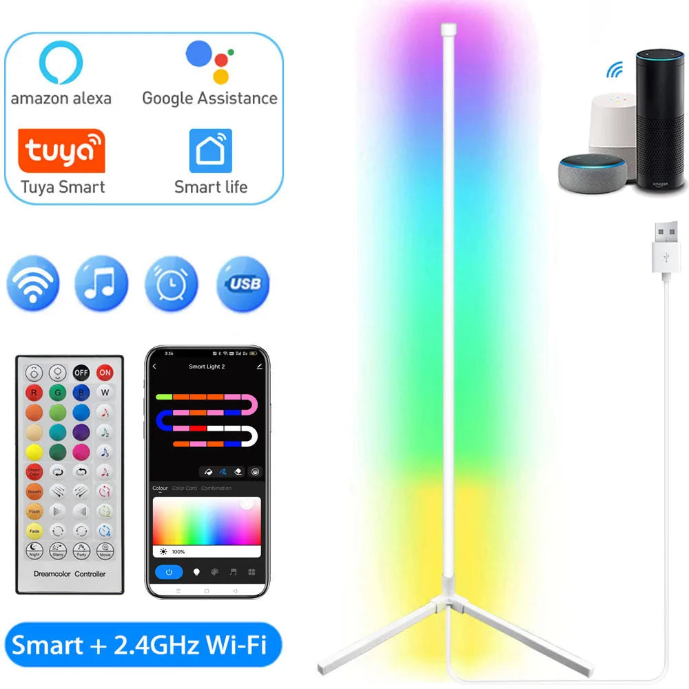 160cm Dimmable RGB LED Corner Floor Lamp – Smart Tuya WiFi Light Bar for Bedroom, Gaming & Holiday Decor