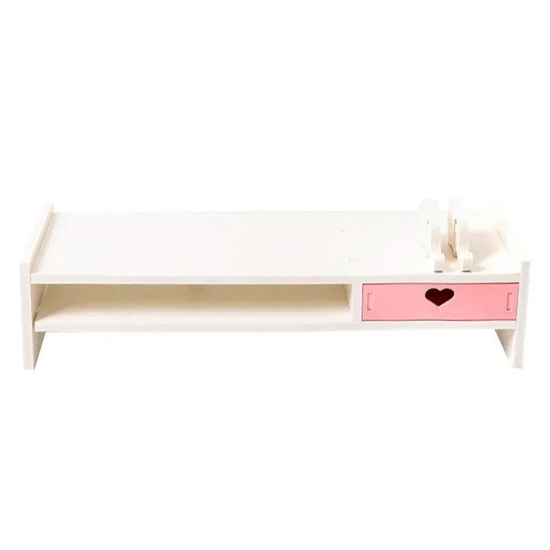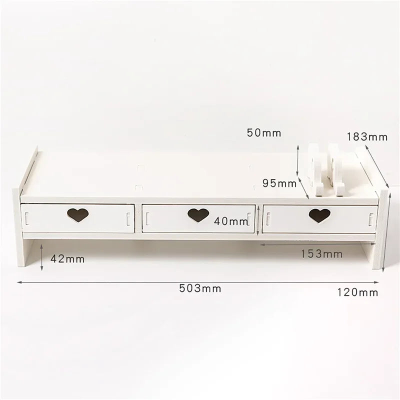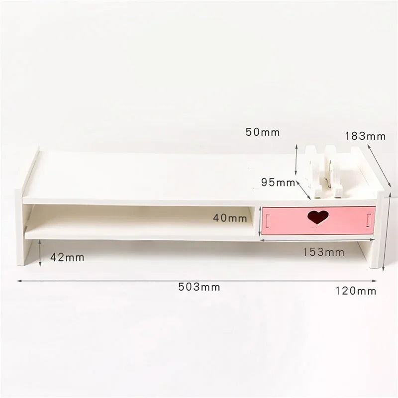 2-Drawer Desktop Monitor Stand – Wooden Computer & Laptop Riser with Storage Rack for Office Organization