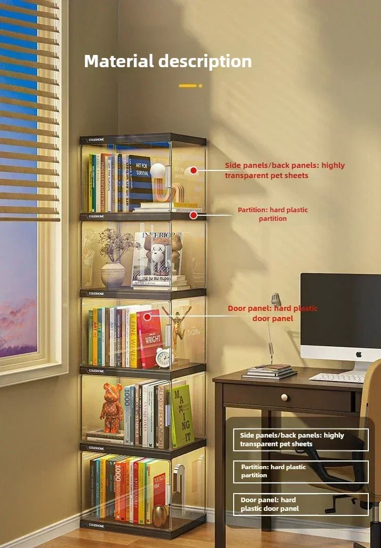 Acrylic Display Cabinet Bookshelf – Dustproof Storage Rack for Figurines, Models & Children’s Books