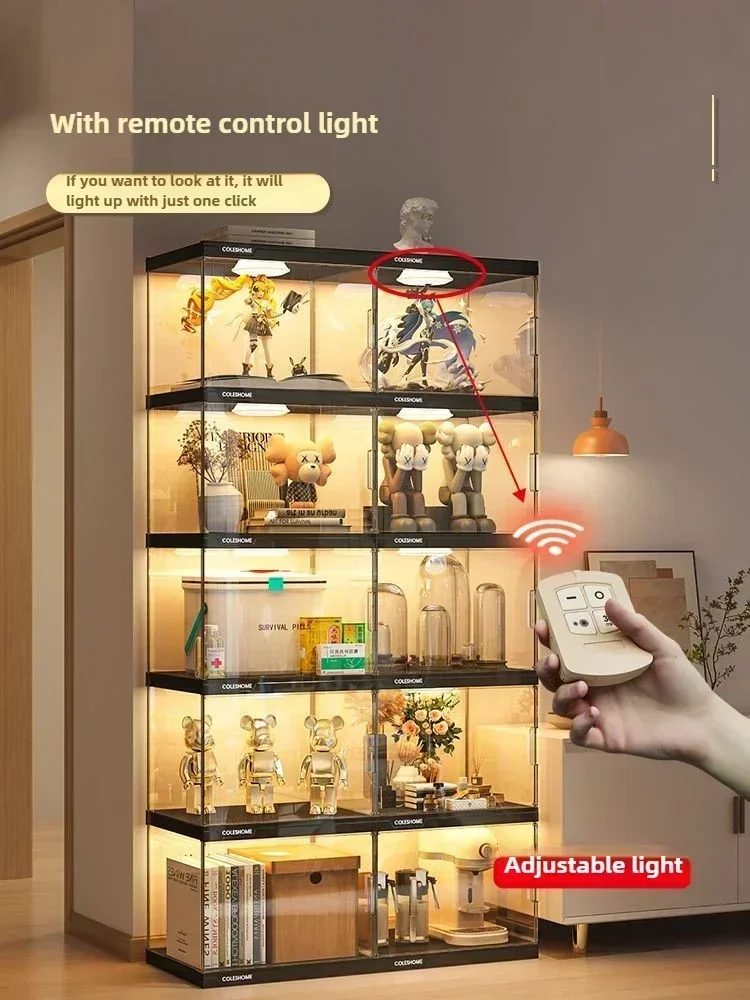 Organize and showcase your favorite figurines, model kits, or children’s books with this versatile dustproof acrylic display cabinet — a sleek, modern shelf solution for any living space.