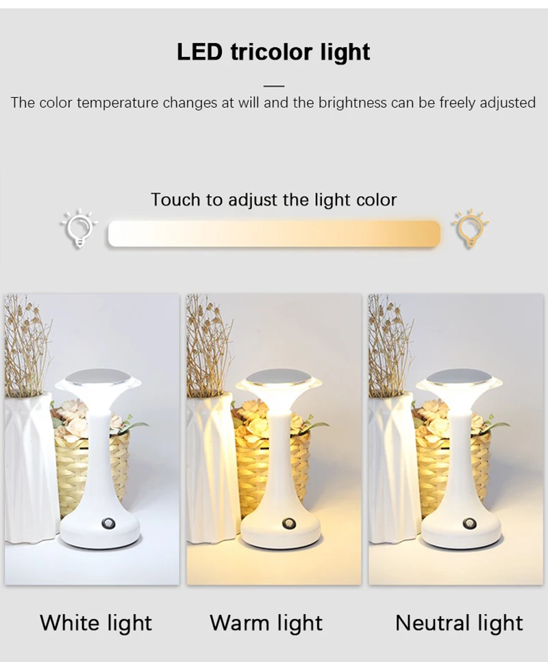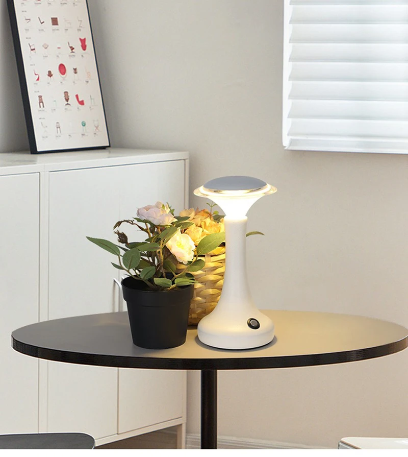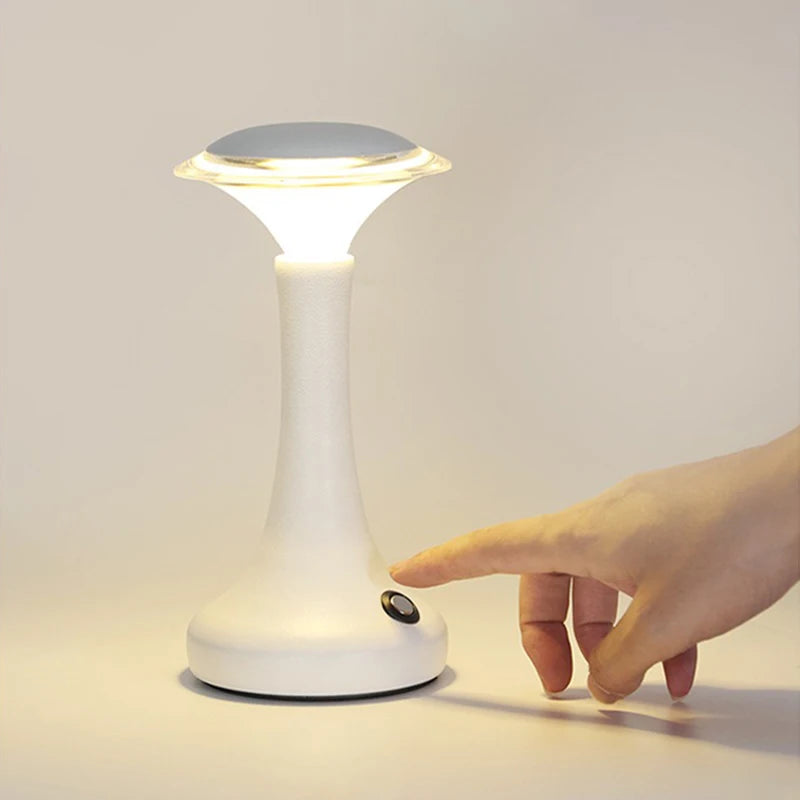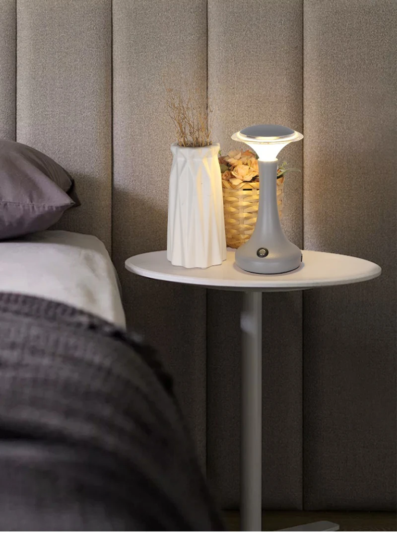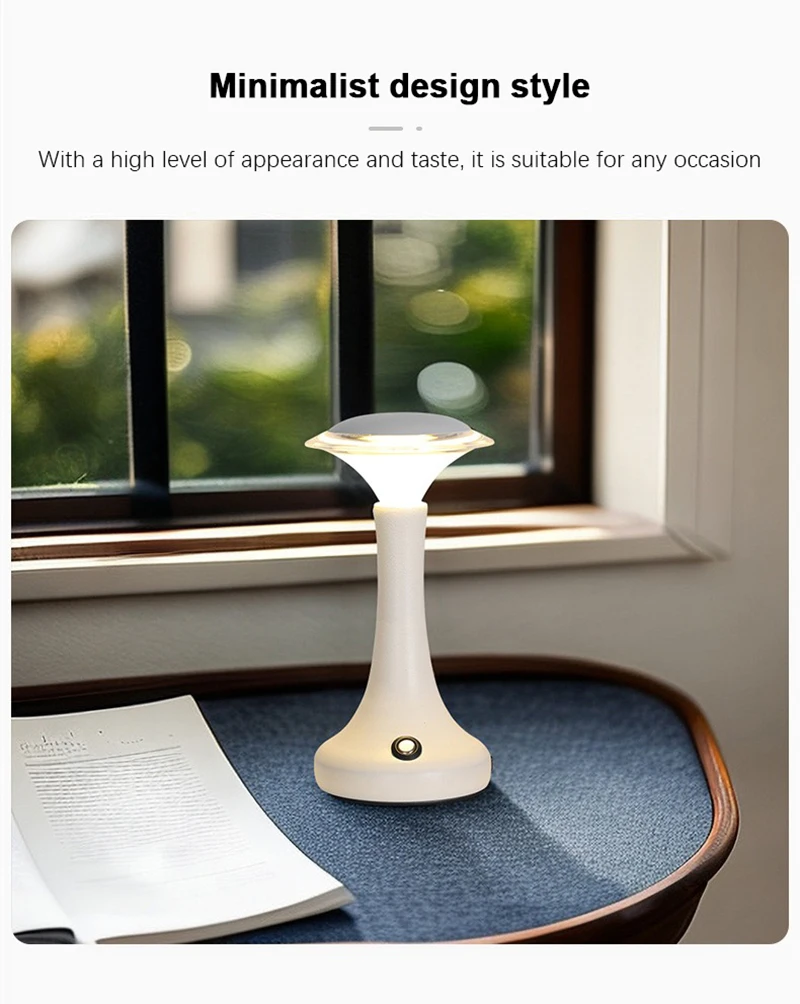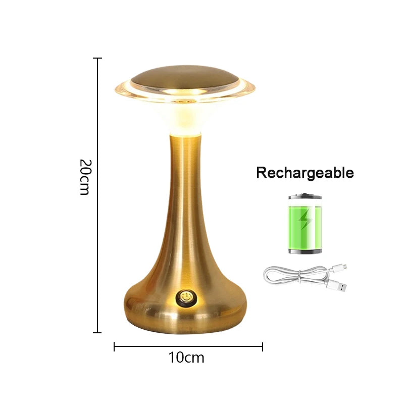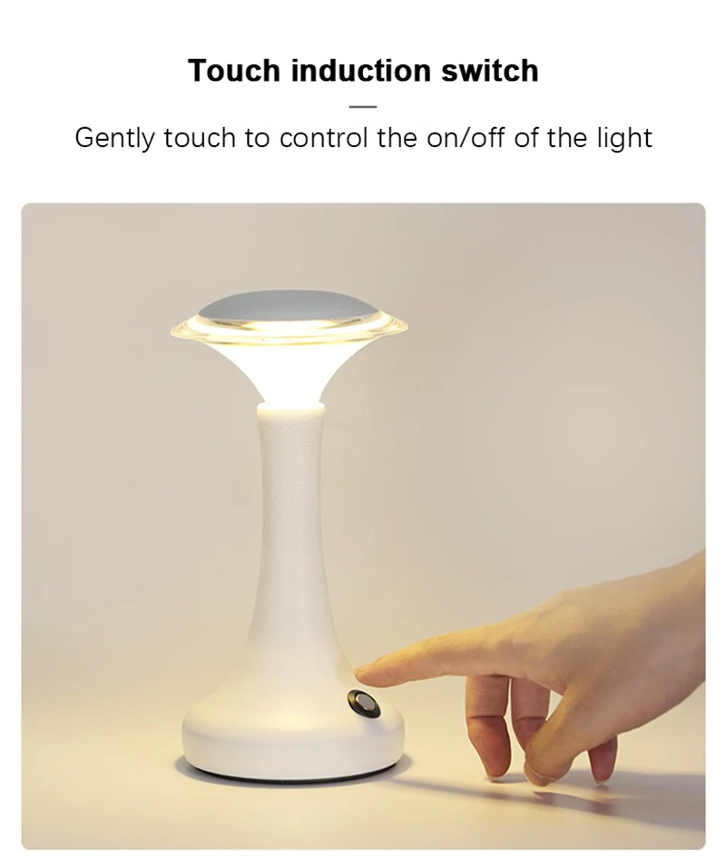Enjoy modern convenience and elegant lighting with this LED touch sensor table lamp — a wireless, rechargeable light perfect for bedrooms, restaurants, bars, or hotel ambiance lighting.