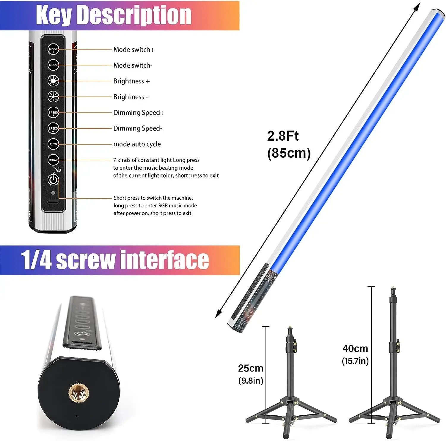 LUXCEO 85cm 4pcs LED Mood Lights – 3W RGB Color-Changing Atmosphere Lighting with Remote Control