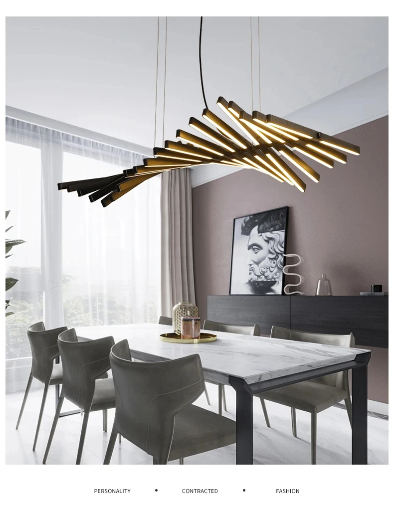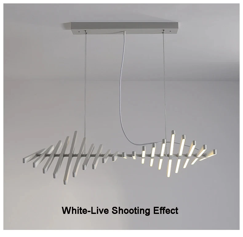 Luxury Fishbone Design LED Chandelier – Dimmable Pendant Light for Living Room, Dining & Office Spaces