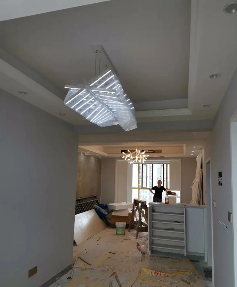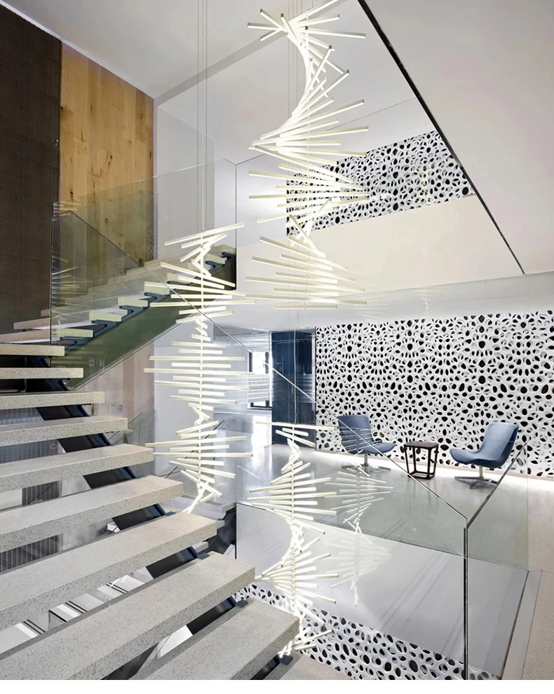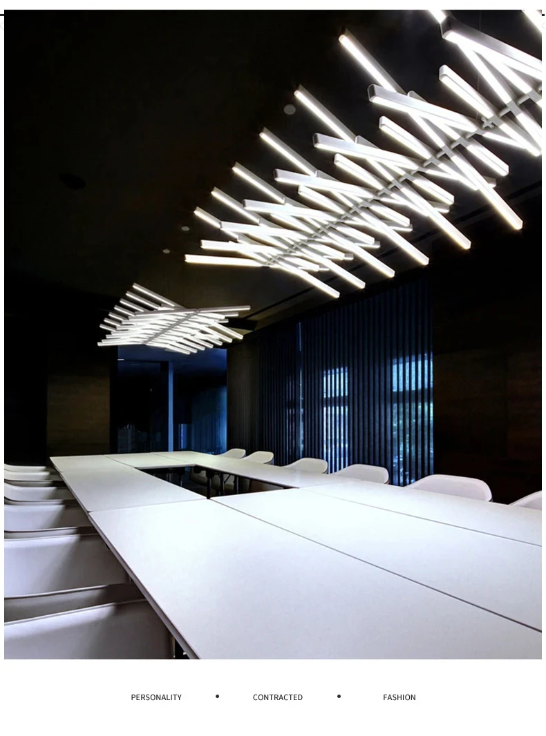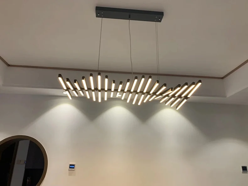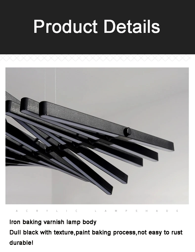 Make a bold architectural statement with this luxury LED chandelier featuring a modern fishbone design — perfect for living rooms, dining areas, and stylish office environments.