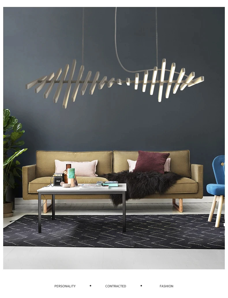 Transform your space with sculptural lighting — add this fishbone LED chandelier to your modern interior.