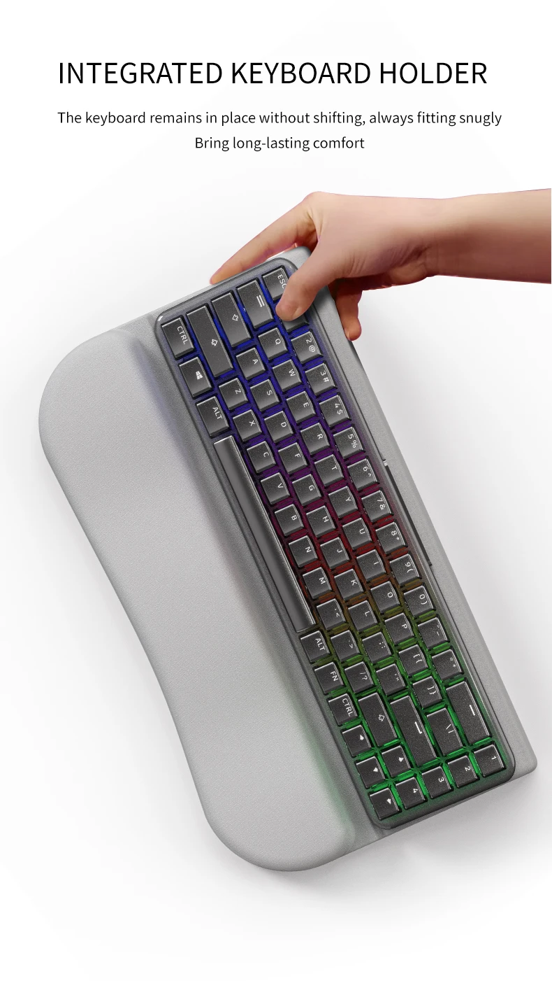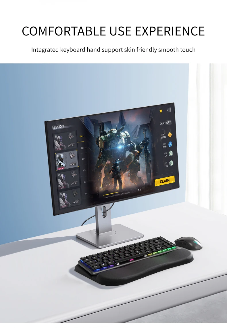Ergonomic design helps reduce wrist strain and fatigue during long typing sessions