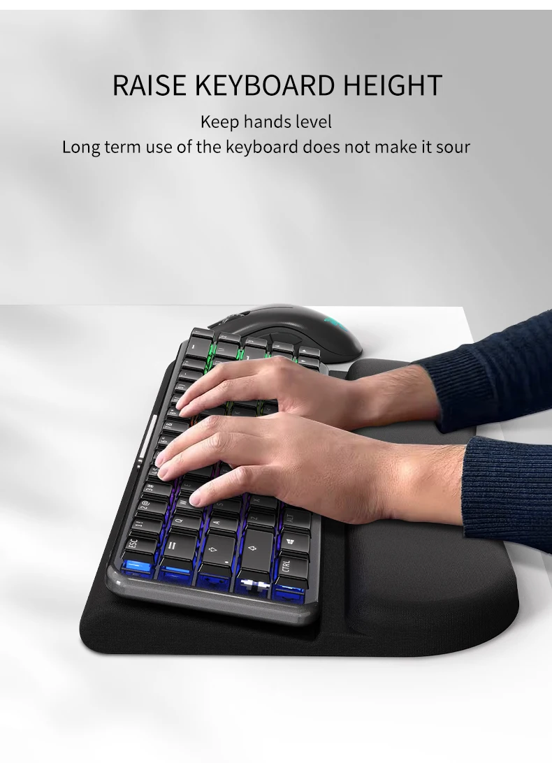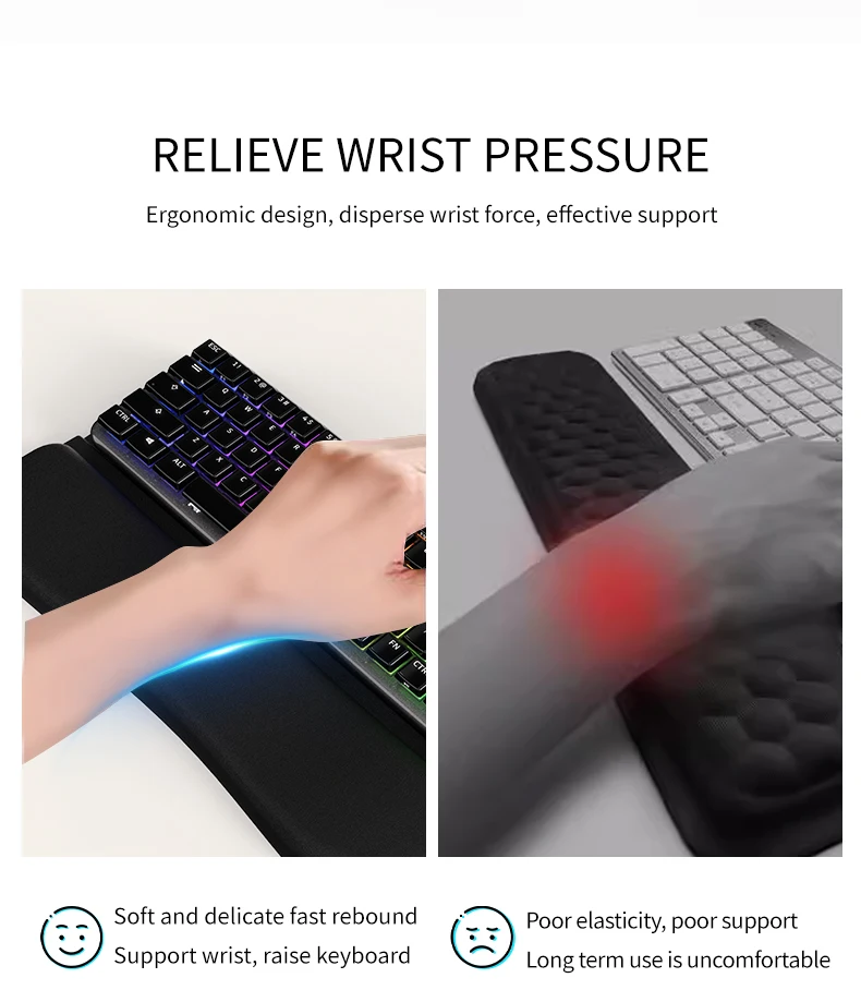Experience effortless typing and long-lasting comfort with this memory foam wrist rest — designed to relieve wrist pain and support proper posture during work or gaming sessions.