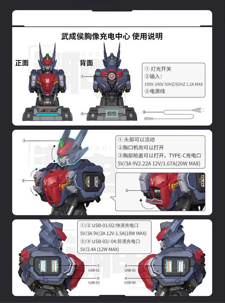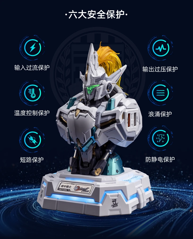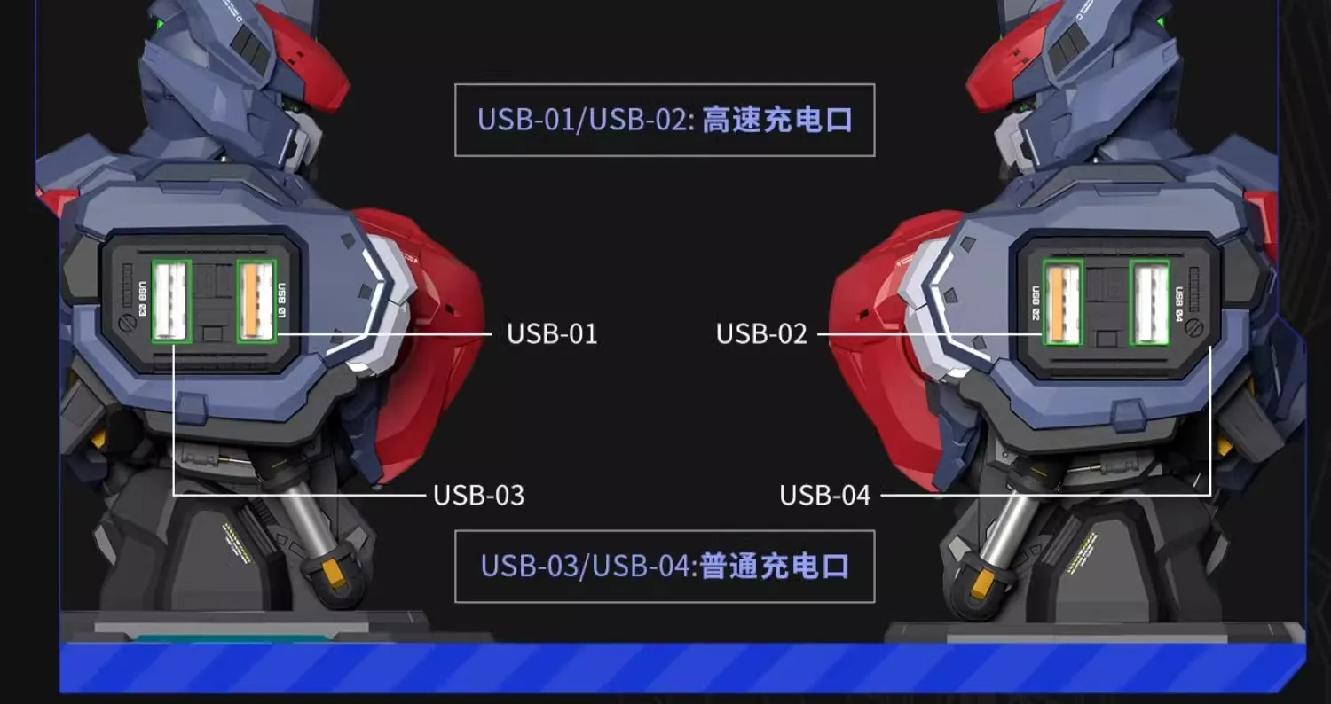 High-grade flame-retardant materials, precision-mecha detailing, and durable Type-C/USB-A dual-interface components.