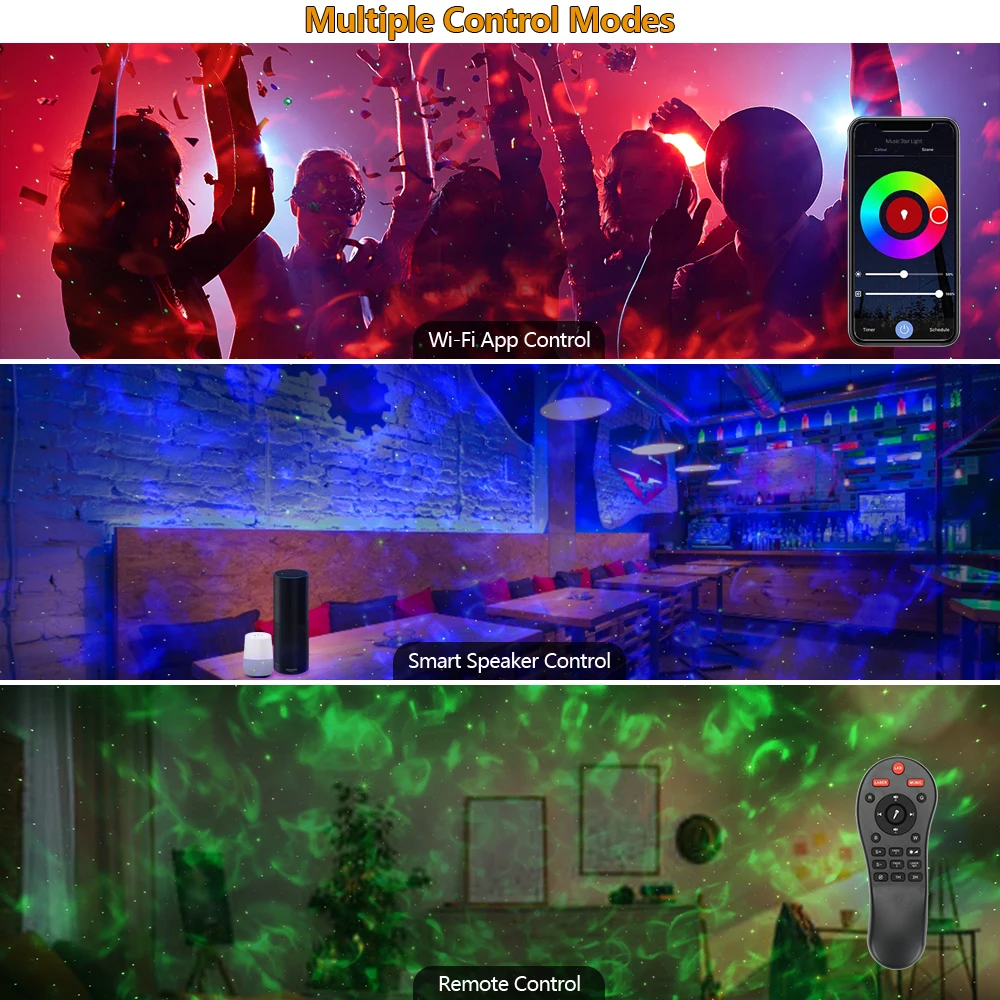 Multiple Light Modes & Colors: Mix stars, waves, and nebula effects with customizable brightness and motion