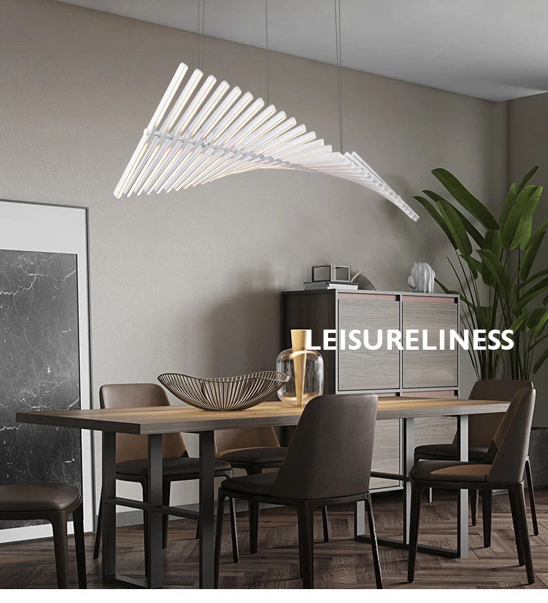 Nordic Fishbone Chandelier – Modern Minimalist Strip Pendant Light for Living Room, Office & Restaurant